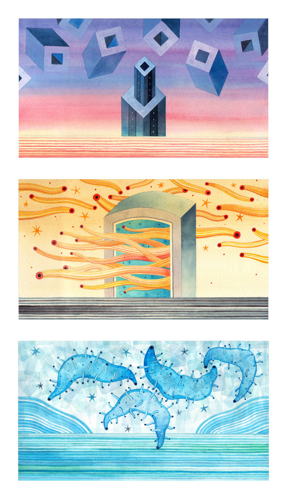 Los estados del día, 2018, acuarela y gouache sobre papel, políptico 73 x 36 cm