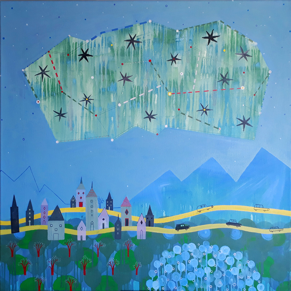 ¿Cuántas estrellas hay en el cielo?, 2020, acrílico sobre tela, 100 x 100 cm