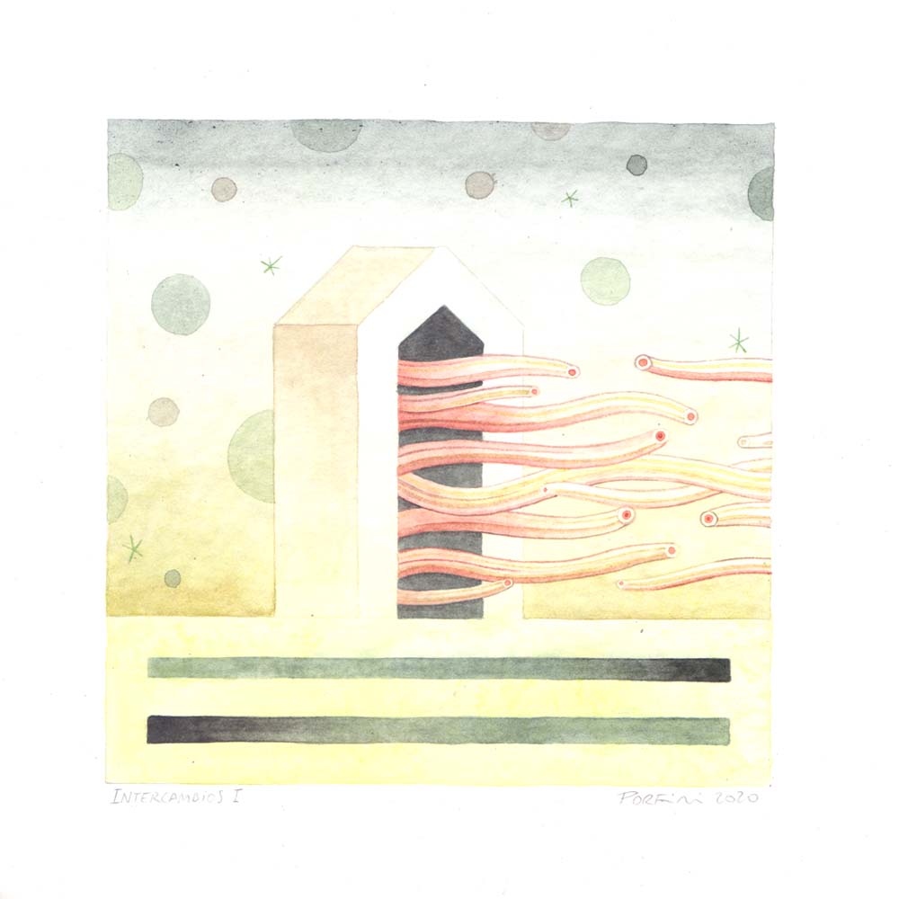 Intercambios I, 2020, acuarela sobre papel, 22 x 22 cm