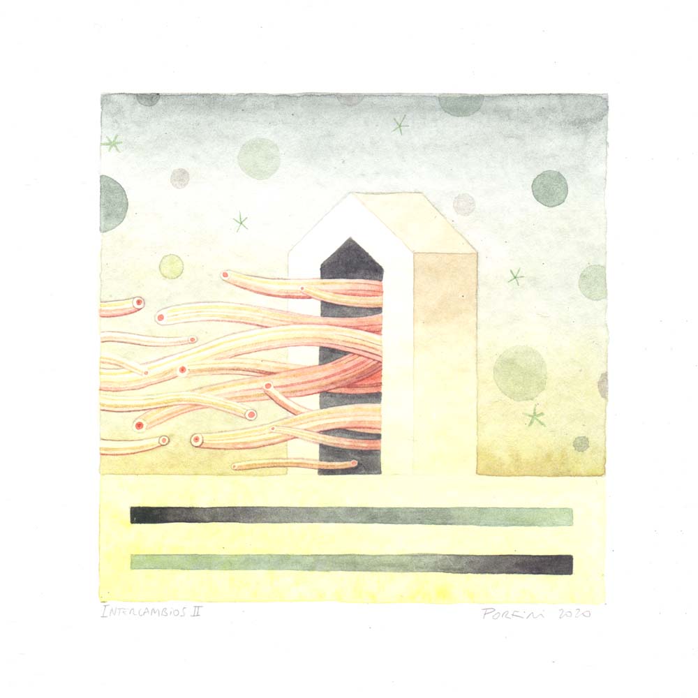 Intercambios II, 2020, acuarela sobre papel, 22 x 22 cm
