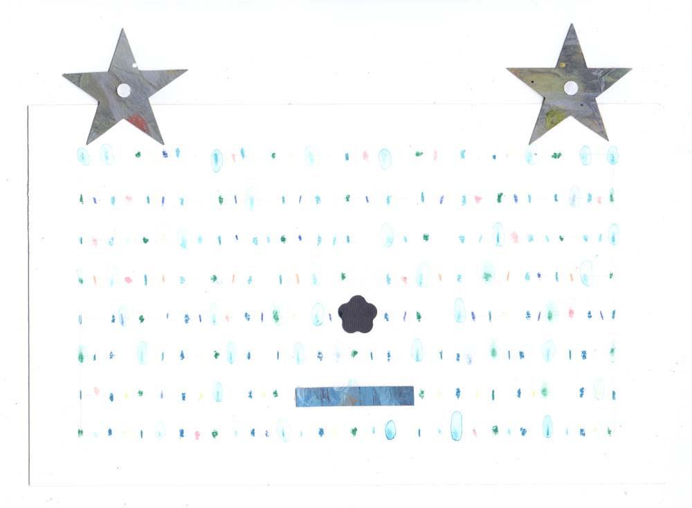 Máquina de estrellas, 2020, nogalina sobre papel de color, 17 x 15 cm