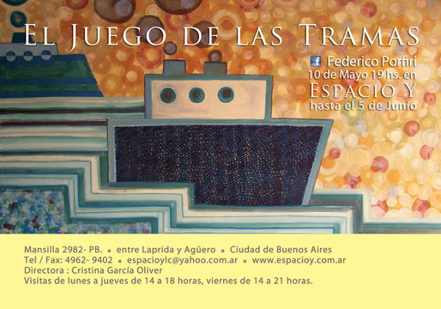 La genuina obra del pintor, ilustrador y escritor Federico Porfiri presenta una poética muy personal. Su lenguaje plástico ha sido influenciado por fuentes muy diversas tales como: la pintura de Roberto Aizemberg, el dibujo infantil, la tradición constructiva y el arte digital, entre otras. En su primera muestra individual: “El juego de las tramas”, aborda el género del paisaje desde una vertiente onírica y metafísica que nos invita a reflexionar sobre lo real. Podría decirse que sus paisajes de gran formato prescinden de la figura humana para poblarse de otros elementos que los constituyen: cielos, nubes, mares, árboles, edificios, etc. La condición metafísica de dichas pinturas es exacerbada por su cualidad semi-urbana ―ya que se sitúan entre el campo y la ciudad― y también por un tratamiento depurado de la técnica al óleo que es mezclado con trementina y pigmentos minerales. Desde el punto de vista formal, sus paisajes bidimensionales armonizan la abstracción y la figuración en un todo integrado por la pulcritud del orden geométrico y un dibujo eximio que recorta impecablemente las figuras del fondo. A su vez, la estructura compositiva se suaviza tanto por el uso de una paleta acotada según la obra que explora los múltiples matices de las gamas, como por el juego persistente y a su vez variado de las tramas. Asimismo, la pericia creativa del artista abarca distintas instancias: la experimentación, el estudio, la investigación y por supuesto, lo lúdico. Puesto que se permite jugar no sólo con los elementos plásticos (tramas, líneas, proporción aurea, etc.) sino que también con los literarios (repetición, metáfora, analogía, emulación, etc.). Y en ese juego, genera también distinta resolución de los componentes de sus obras. Dicha variedad origina una riqueza que finalmente se integra a través de las formas, las tramas o bien por el uso del color. El título de esta muestra: “El juego de las tramas”, se debe a que, dentro del universo poético de Porfiri, la trama tiene un protagonismo muy notorio. Es un elemento intermedio entre la línea y el plano, que permite componer y construir a este último. Tal es así que nuestro pintor al ejecutar una obra, hace una trama y en la repetición meditativa de sus formas (que pueden ser por ejemplo: círculos, cruces, ondas, etc.) la trama le sugiere una figura o un fondo a dibujar. Es decir que, en su juego plástico de variedad y repetición, las tramas operan desde el inicio hasta la culminación del proceso creativo en tanto configuradoras del espacio de la obra y de sus elementos. Y al mismo tiempo, actúan como signos. Indudablemente las tramas son parte de la identidad y de la singularidad de sus pinturas. Ahora bien, el juego creativo del artista, ya explicitado, convoca también al espectador. Ciertamente, el autor Hans-Georg Gadamer en su libro: La actualidad de lo bello, propone al juego como un elemento constitutivo del arte que implica una participatio, el espectador está involucrado como un co-jugador activo en el proceso de recepción. Es decir que la interpretación de la obra se le presenta al mismo como desafío, un noble trabajo constructivo y reflexivo de índole espiritual. Precisamente, este tipo de reflexión, más allá del indudable deleite visual, es la que propone Porfiri en sus paisajes oníricos metafísicos. Por último, cabe aclarar el sentido que ostenta la metafísica para nuestro artista. El la sitúa a mitad de camino entre la poesía y la filosofía. Un espacio donde se crea un mundo que no es el real pero que especula espiritualmente sobre lo real. Al igual que en sus paisajes metafísicos, en los cuales las apariencias pueden corresponderse o no con la realidad. Dado que sugerirle distintos climas al espectador no implica dejar de reflexionar sobre nuestro mundo.