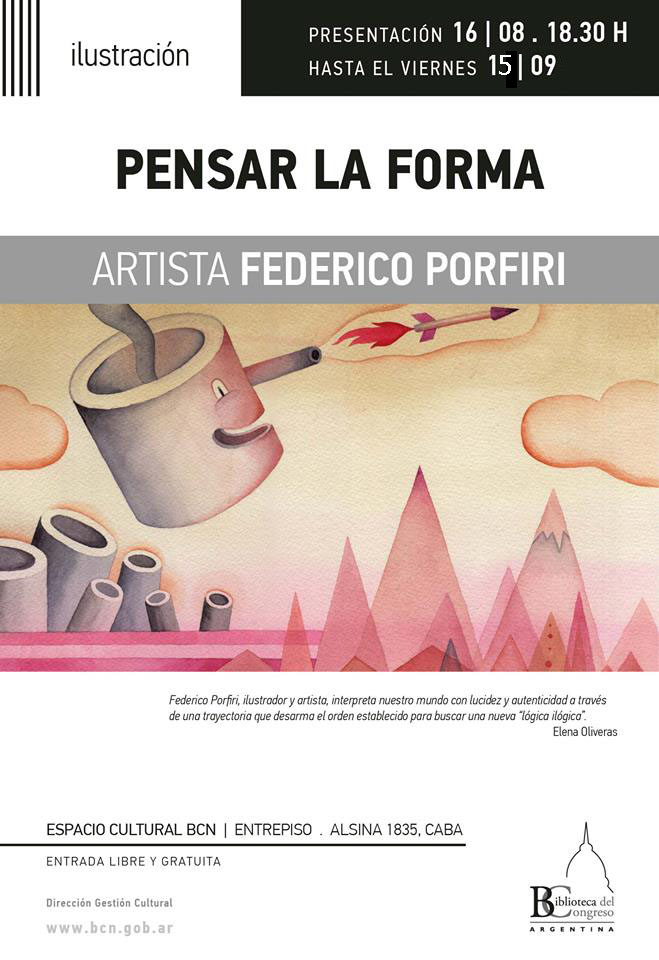 Pensar la forma es la propuesta de Federico Porfiri resumida en pocas palabras. Esa propuesta acentúa una doble función de la forma, como elemento plástico y como punto de partida de un pensamiento que promueve un nuevo reparto de lo sensible.
