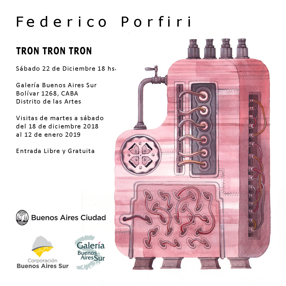 La obra de Federico Porfiri se presenta como un umbral hacia un mundo donde el color y el trazo, dominan paisajes y construcciones. Tramas infinitas, alteradas por una sintonía de colores en un espacio onírico, parecen huir de un marco al otro creando un correlato entre los diversos espacios metafísicos.