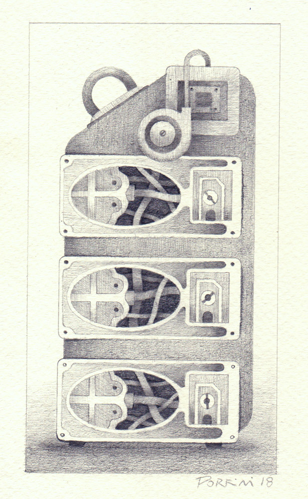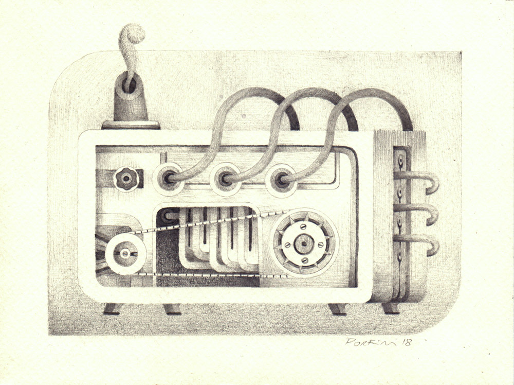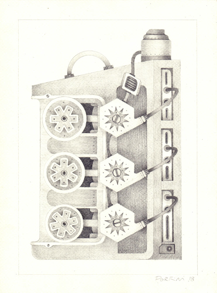 Máquina II, 2018, lápiz sobre papel, 20 x 13 cm