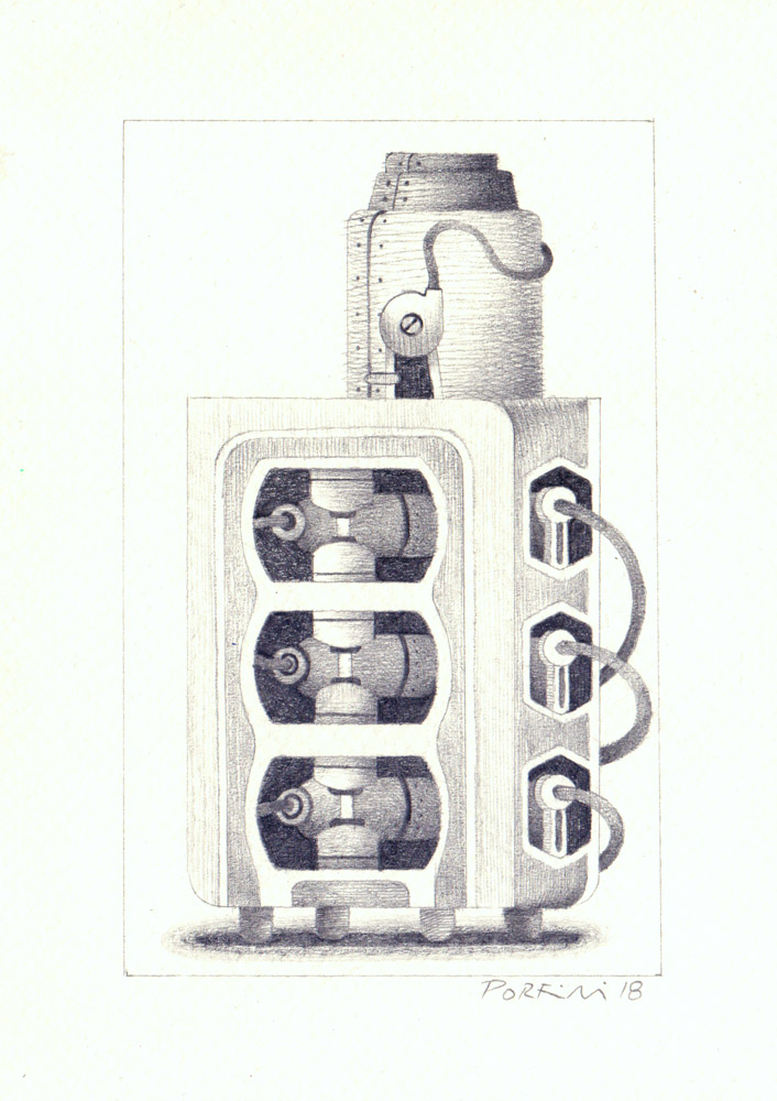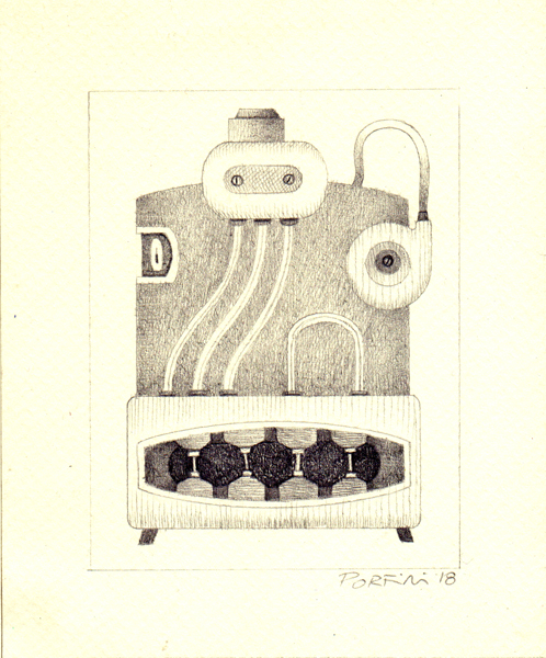 Máquina VII, 2018, lápiz sobre papel, 12 x 9 cm