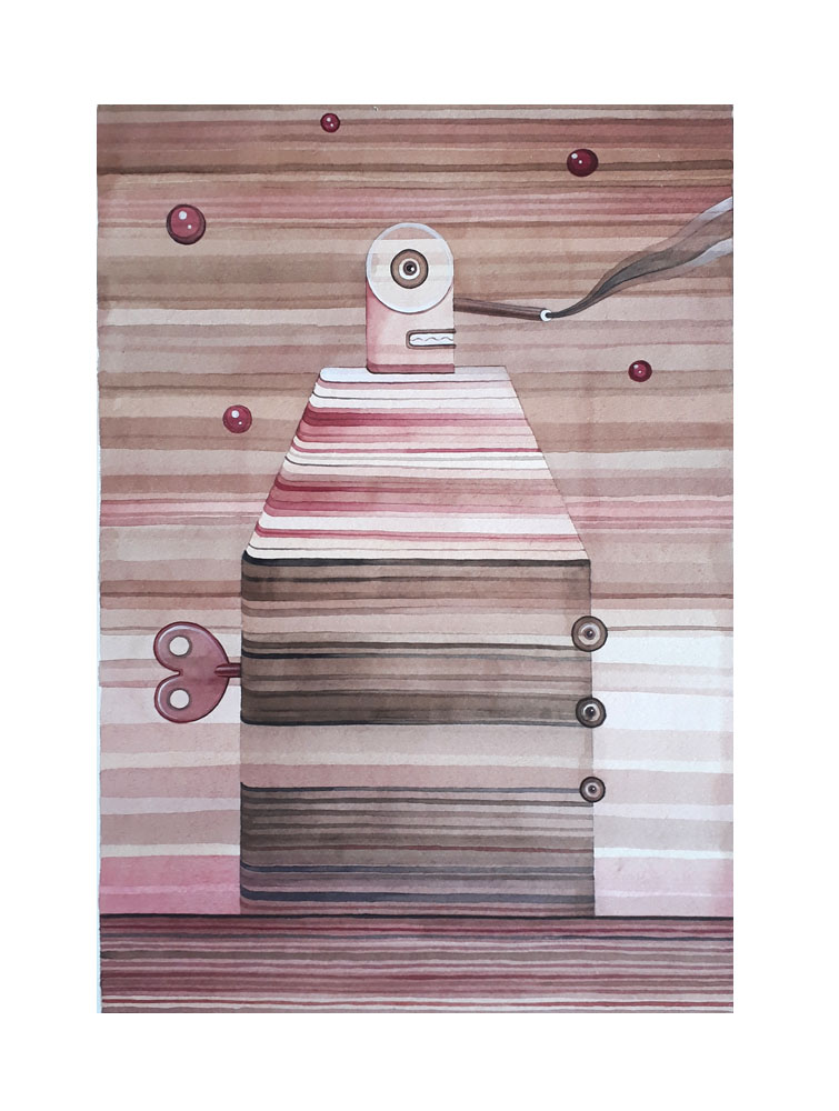 Autómata II, 2018, acuarela sobre papel,