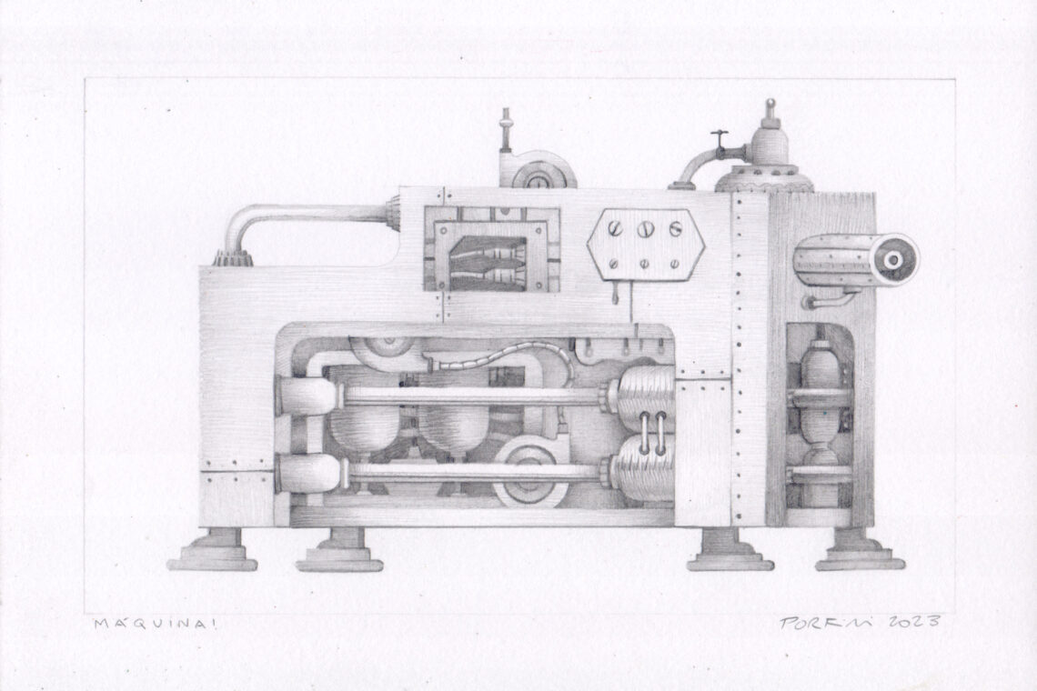 Máquina!, 2023, lápiz sobre papel, 17 x 25 cm