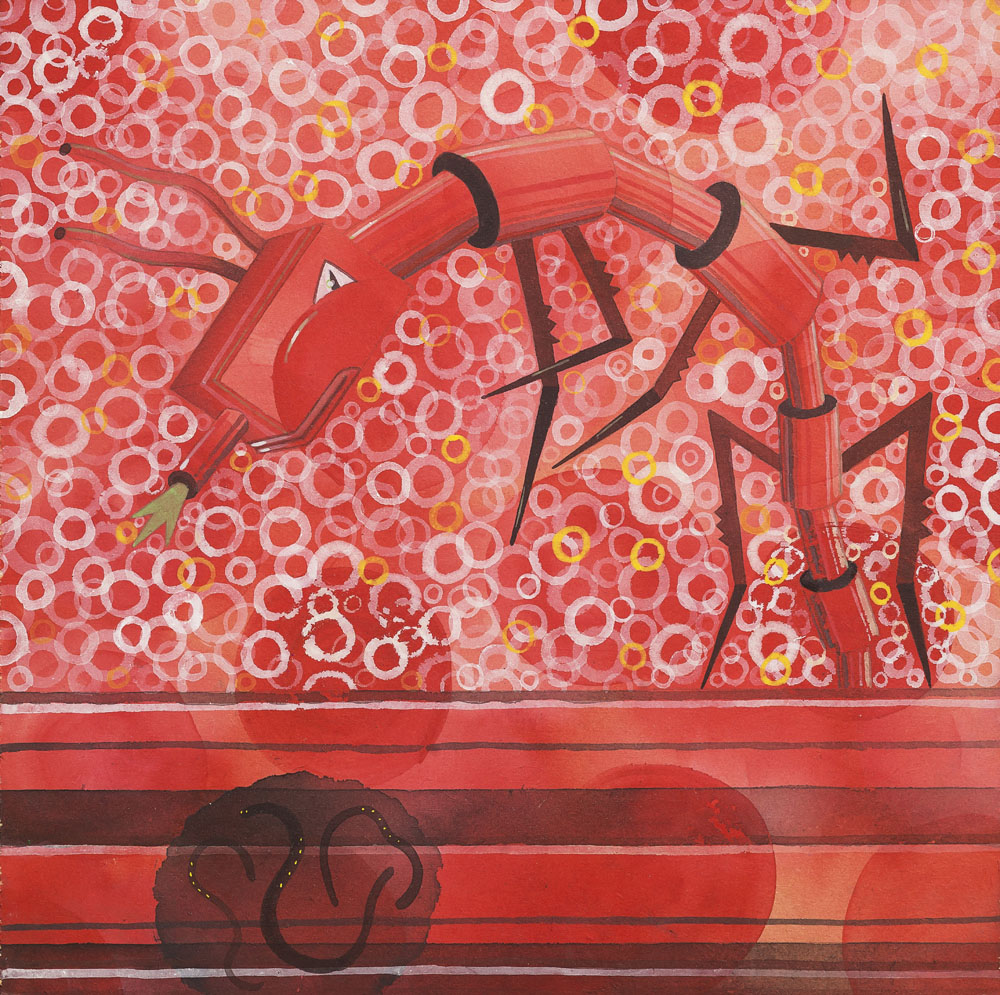 Langosta, 2016, acrílico sobre fibrofácil, 30×30 cm