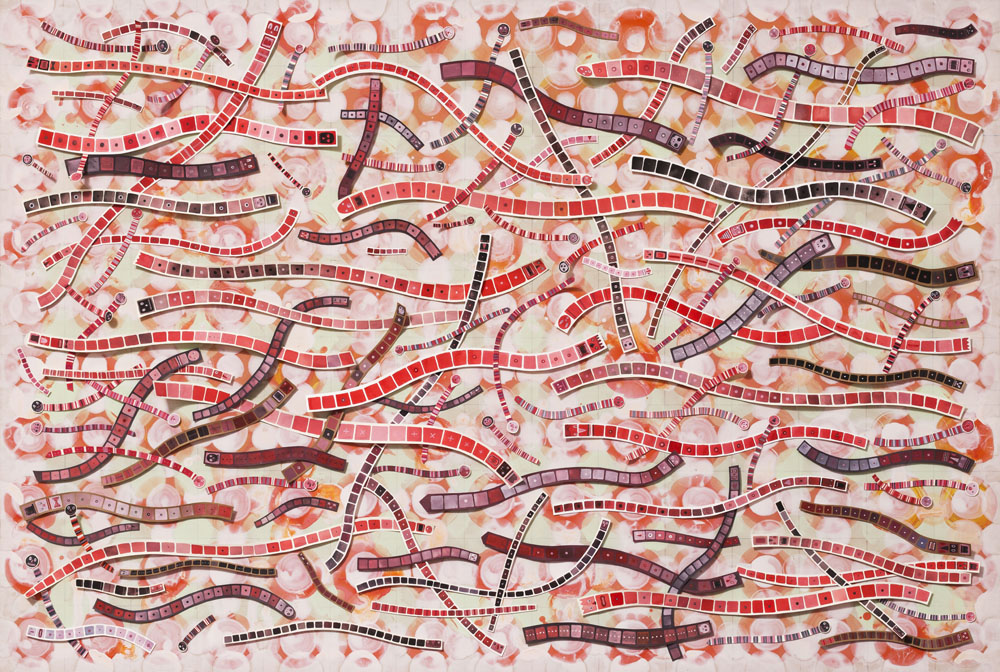 Gusanitos, 2018, collage sobre MDF, 100 x 150 cm